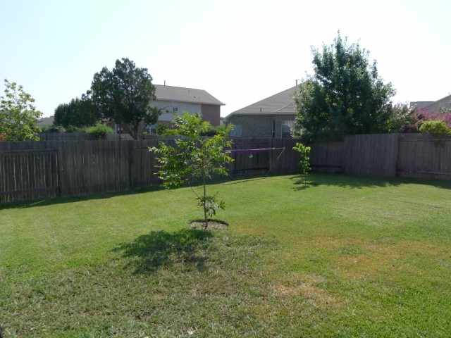 Larger than average back yard Fully fenced Lawn irrigation system Fruit trees