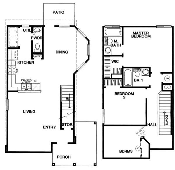 Large dining with bay windows Powder room at back left Utility room has washer/dryer connections |