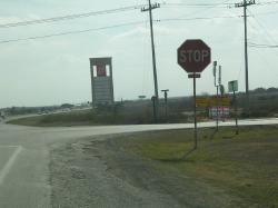 From Austin take I-35 South, going past Buda. Take exit 217 and go 0.4 miles to the stop sign at County Road 210, and you will see the view in the picture at the left. Now, take a right onto County Road 210; go 0.3 miles and the road will curve left behind the blue Palm Harbor building. Keep going another 1/2 mile to the next intersection in the picture below. |