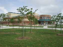 on the left, then the new Hays ISD Performing Arts Center on your right