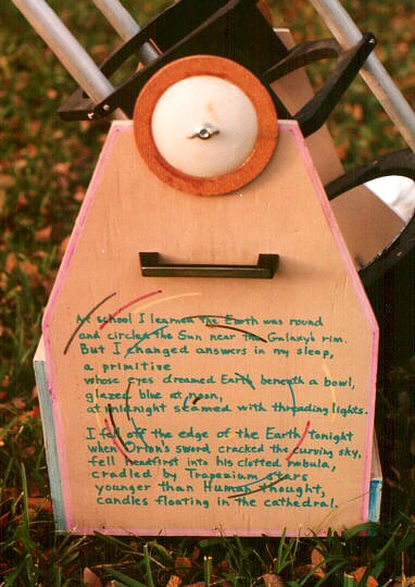 The poem was given to me years ago. I was told that it was written by a woman who had looked through a telescope for the first time. I would love to know its source, and if you do, please email me! I've reprinted the poem at the bottom of this page.